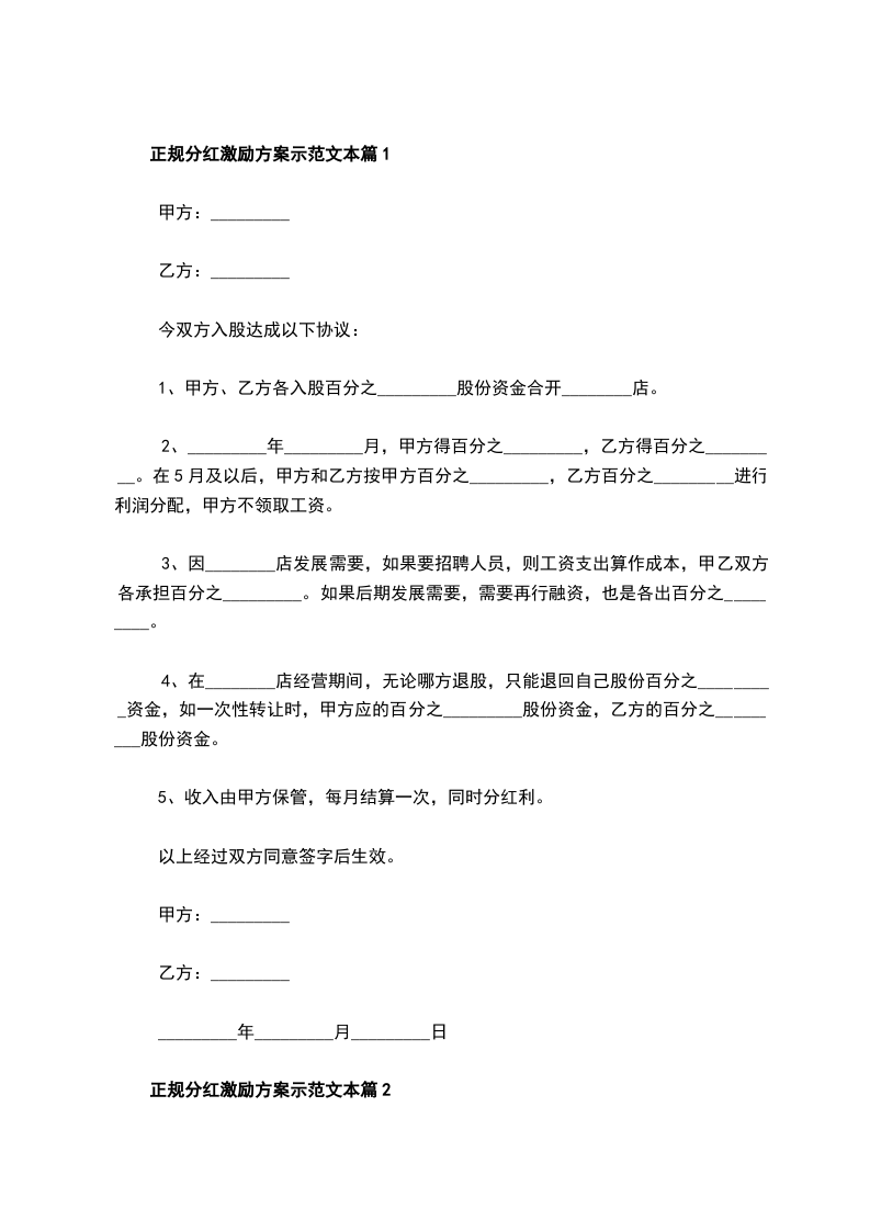 正规分红激励方案示范文本篇1