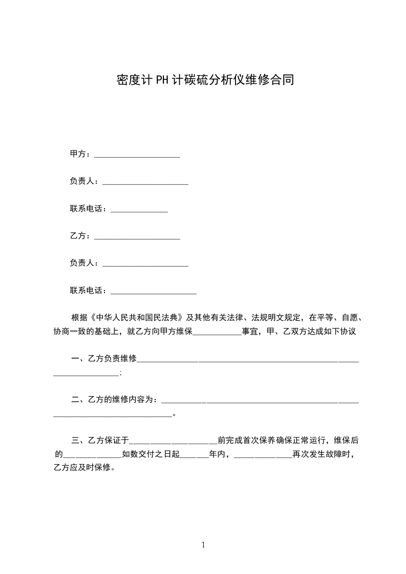 经甲乙双方友好协商,由乙方承揽甲方________________________修理工作,双方本着平等互利、真诚合作原则,结合本工程具体情况,依据《中华人民共和国民法典》有关规定,签订本合同,具体条款如下:
