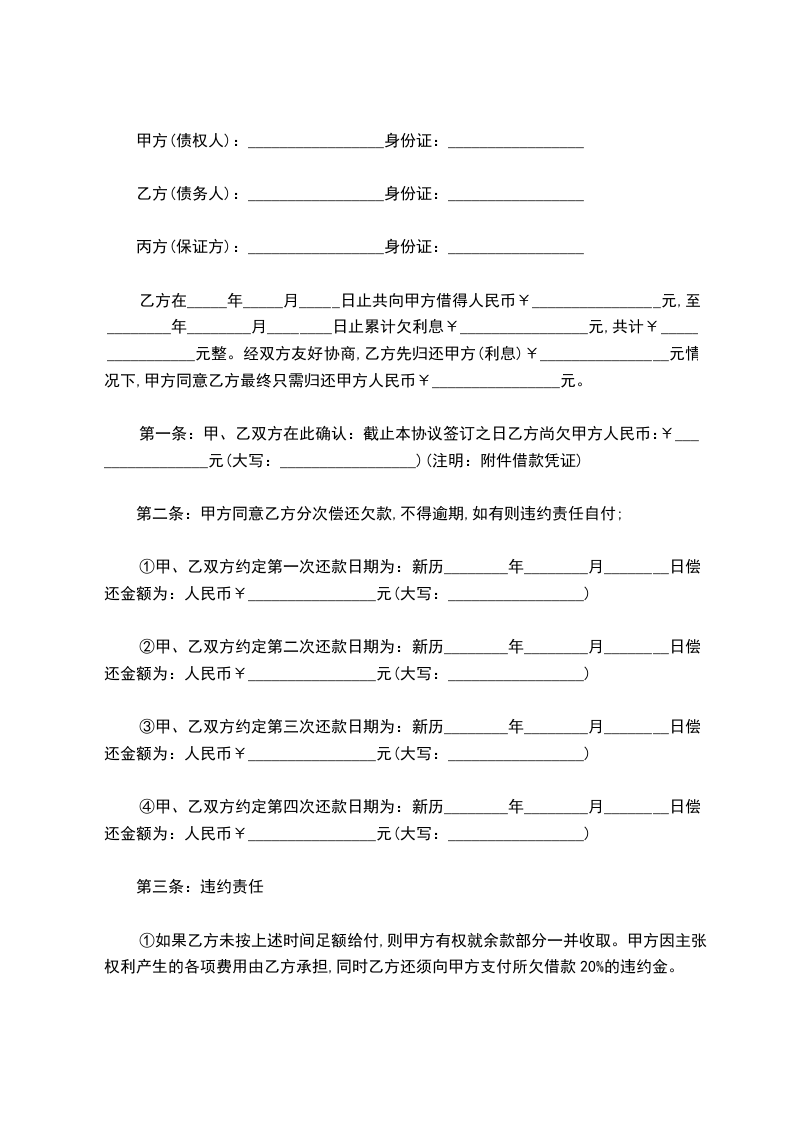 甲方(债权人):_________________乙方(债务人):_________________丙方(担保方):_________________