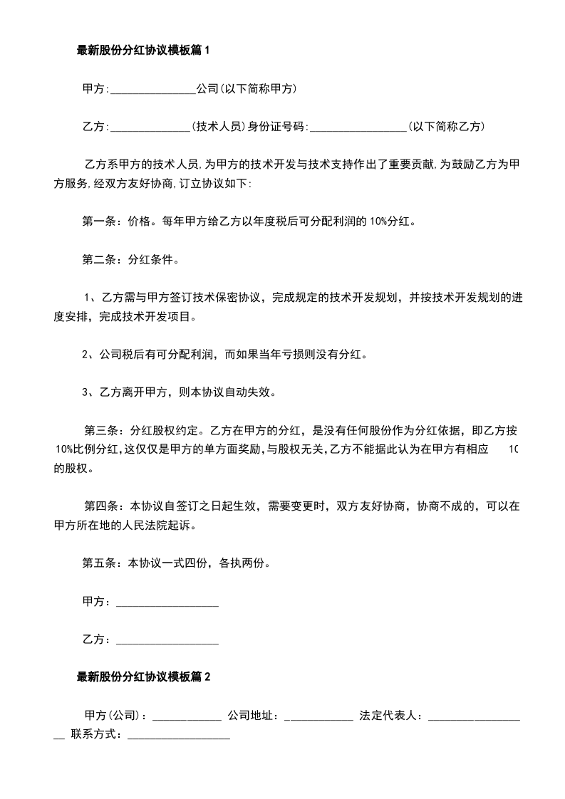 2、乙方所得红利比例为___%(以___税后可分配利润___为基准),通过___方式支付,并视公司的发展以书面形式每______年调整一次;