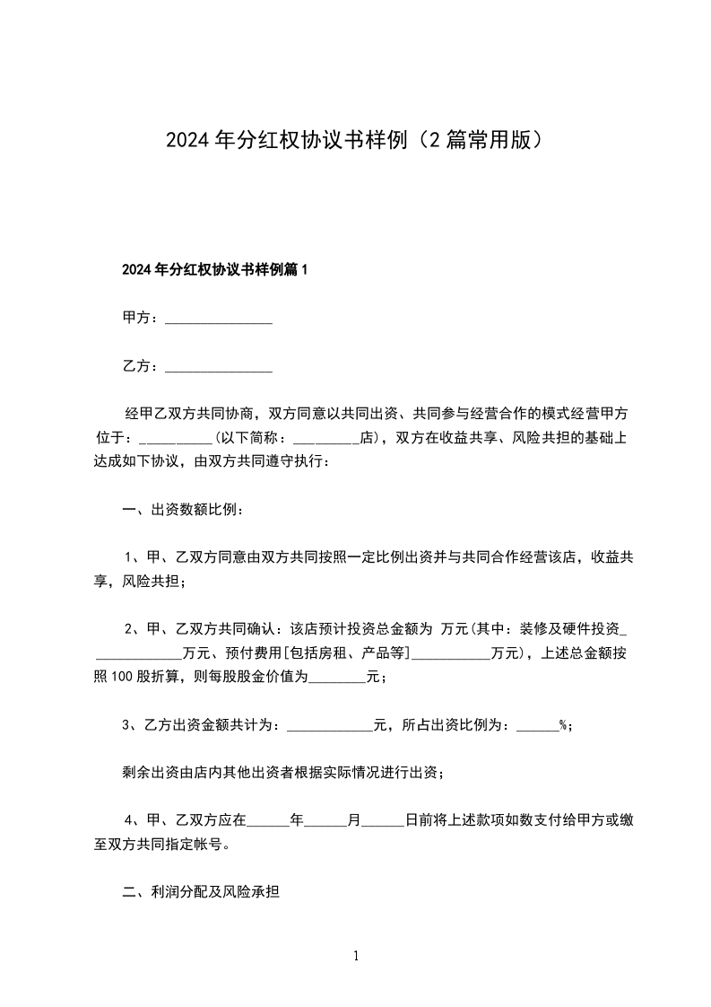 2、 该股份可享受__________________公司年度纯利润的分红;