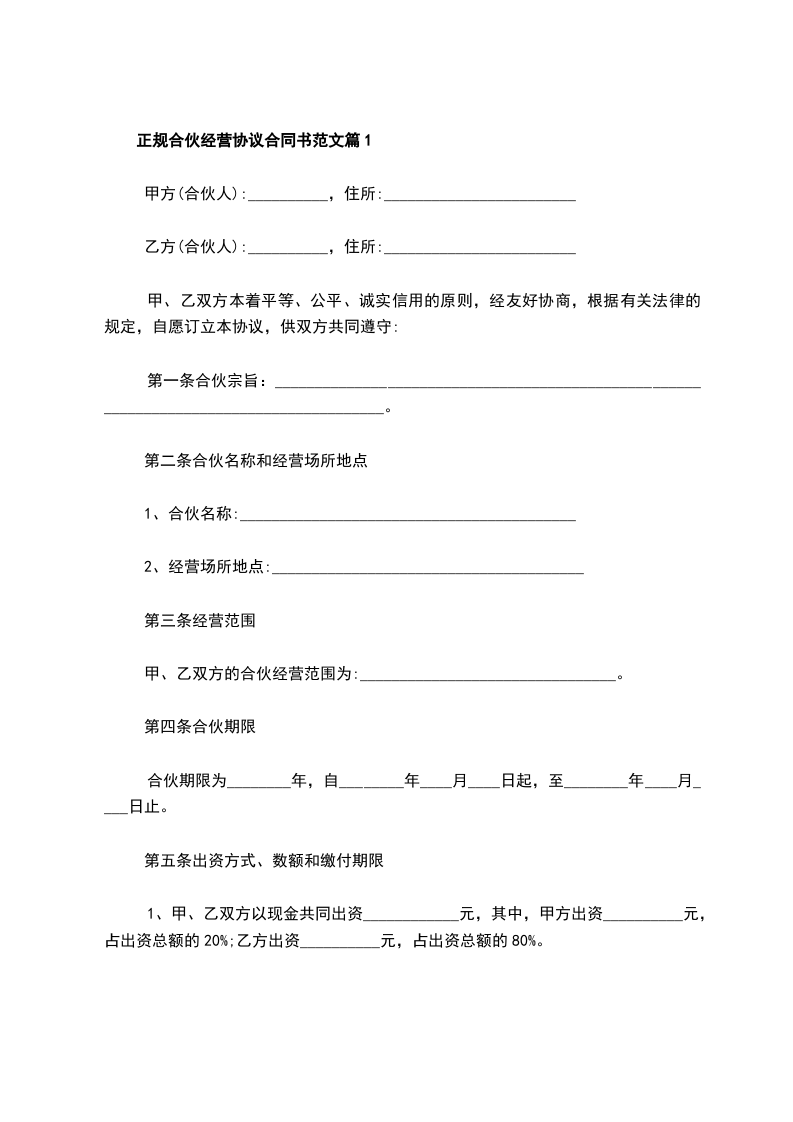 正规合伙经营协议合同书范文篇2