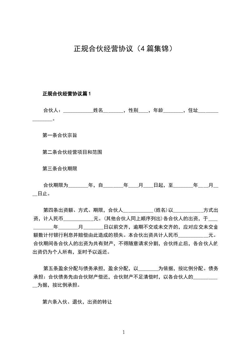 正规合伙经营协议合同书范文篇1