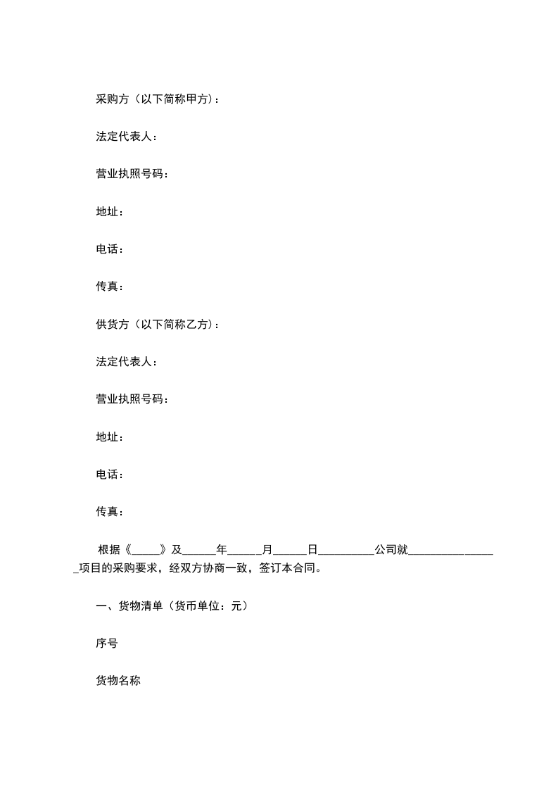 根据《_____》及______年______月______日__________公司就________________项目的采购要求,经双方协商一致,签订本合同。