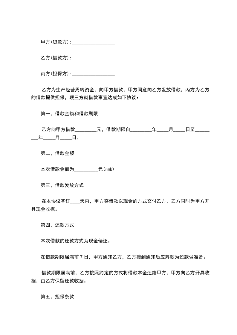 (五)在规定贷款时间内,乙方因不可抗力发生改变经营方式、出兑或停业等情形时,乙方应归还贷款本金,若乙方不能还款,应由丙方负责还款,违约责任见第七条。