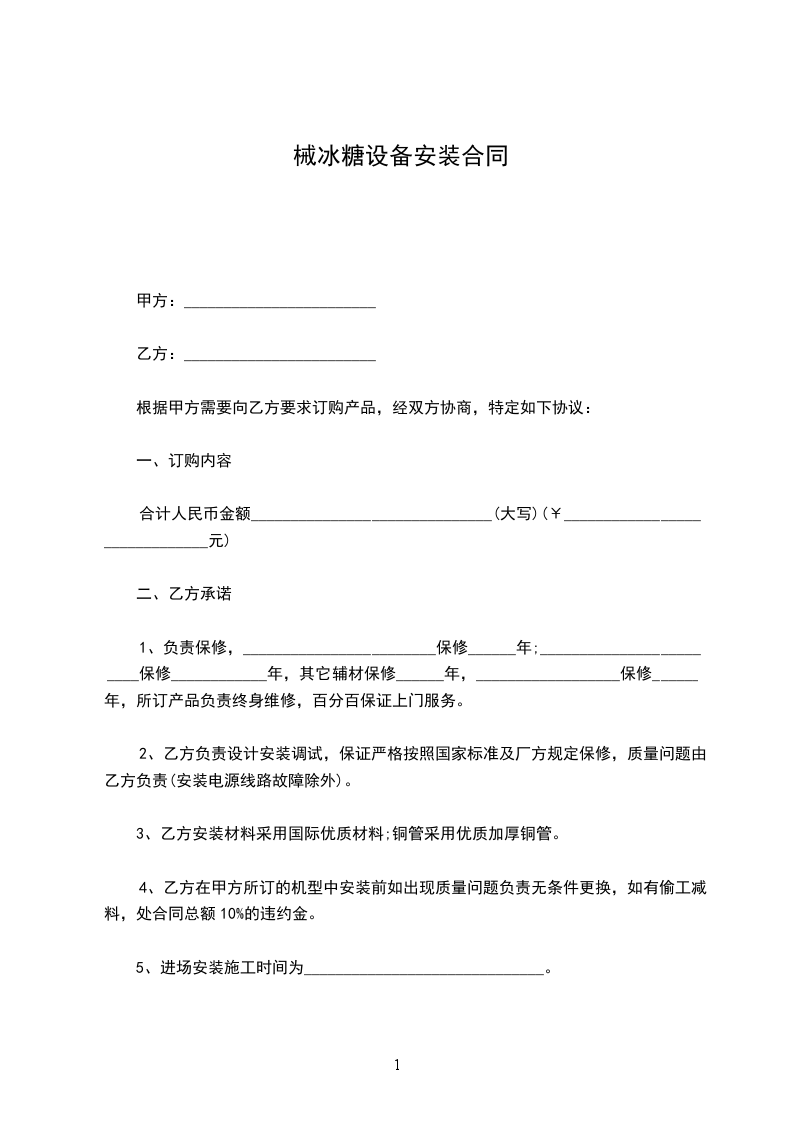 4、乙方在甲方所订的机型中安装前如出现质量问题负责无条件更换,如有偷工减料,处合同总额10%的违约金。