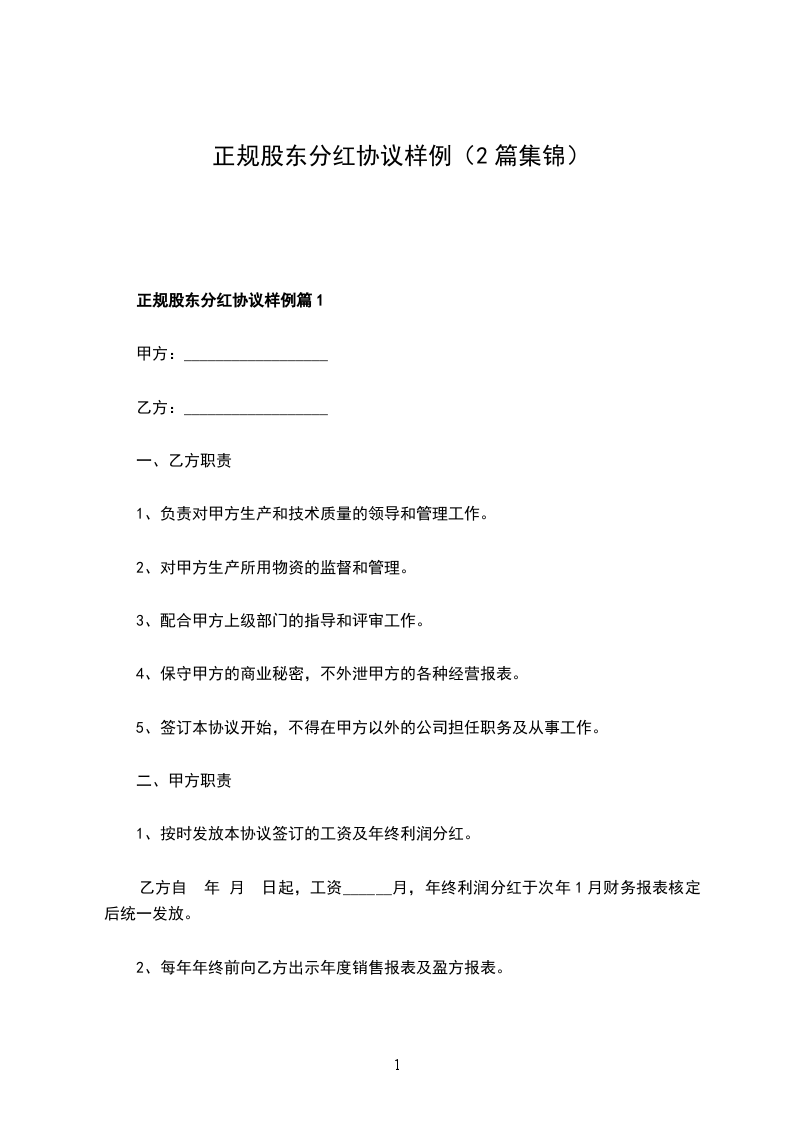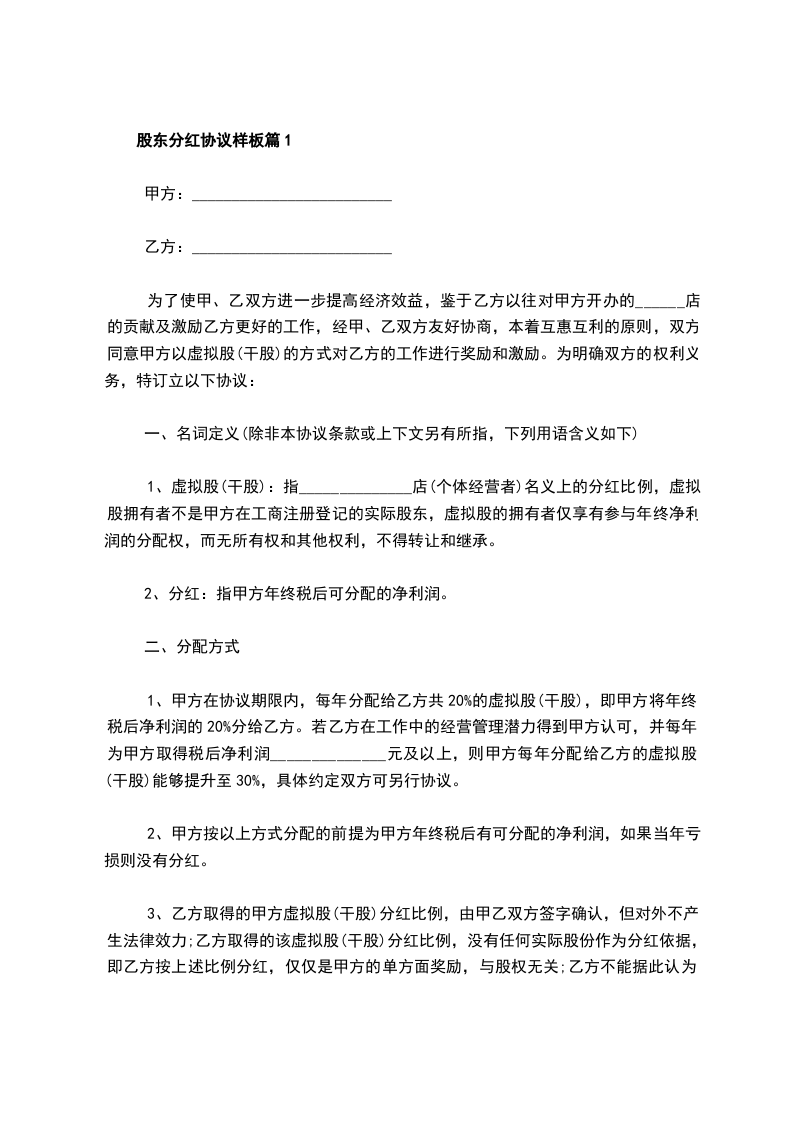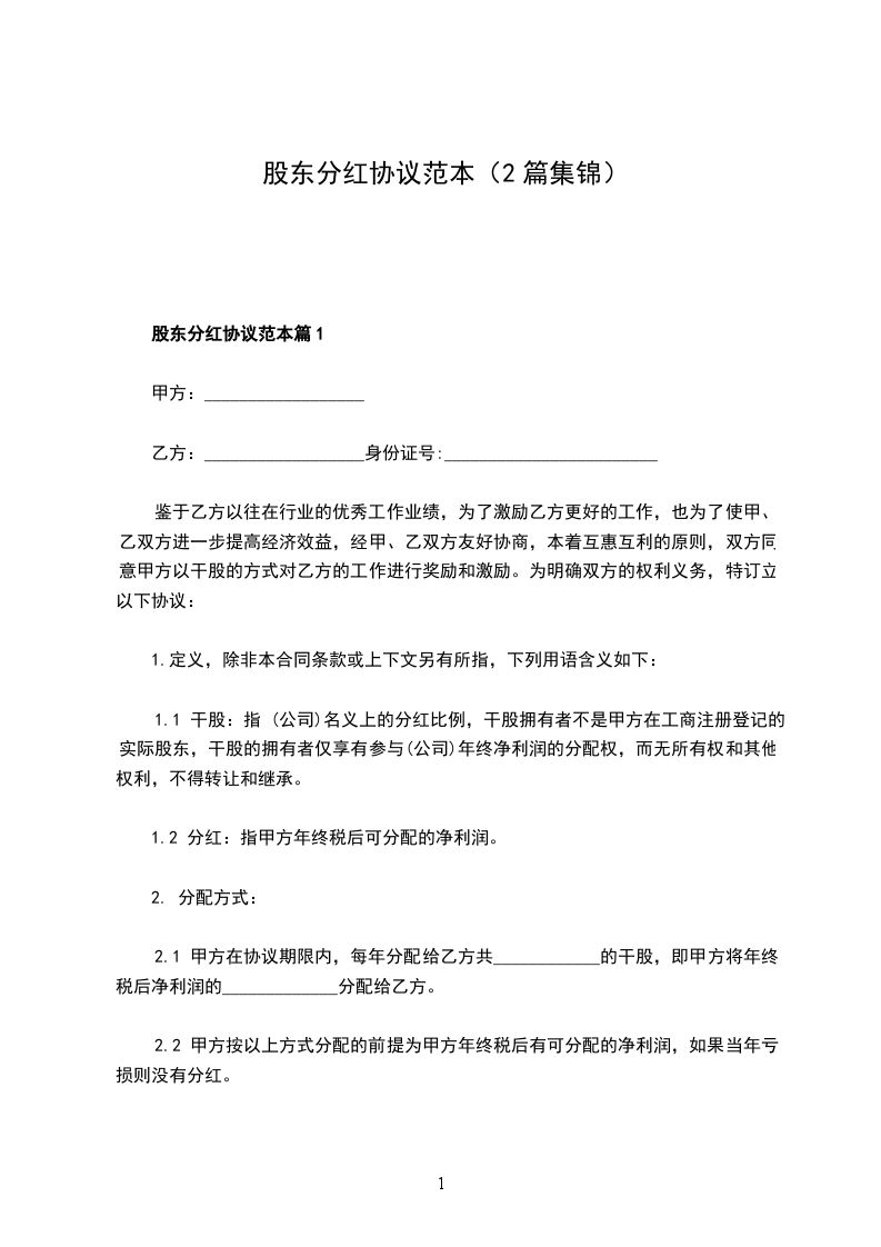 新版股东分红协议怎么拟篇2