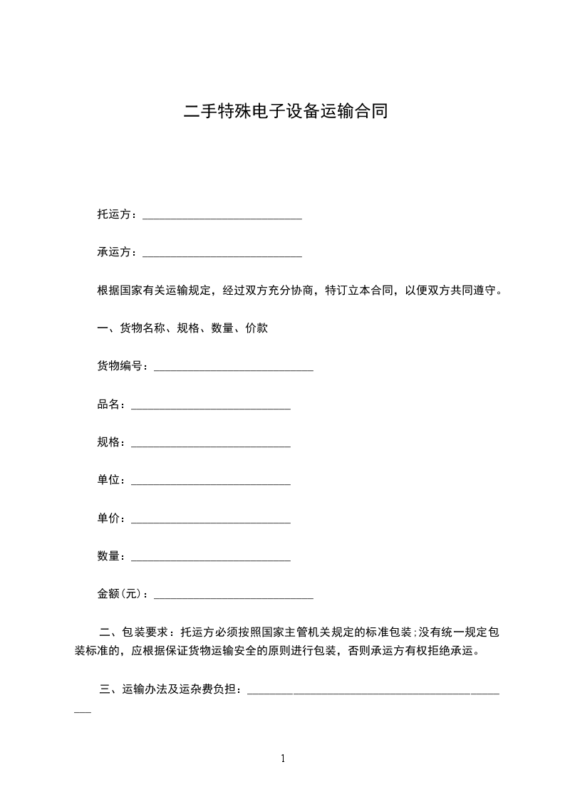二手特殊工程设备运输合同