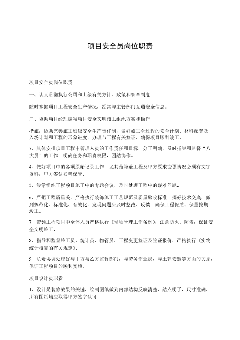 项目安全员岗位职责