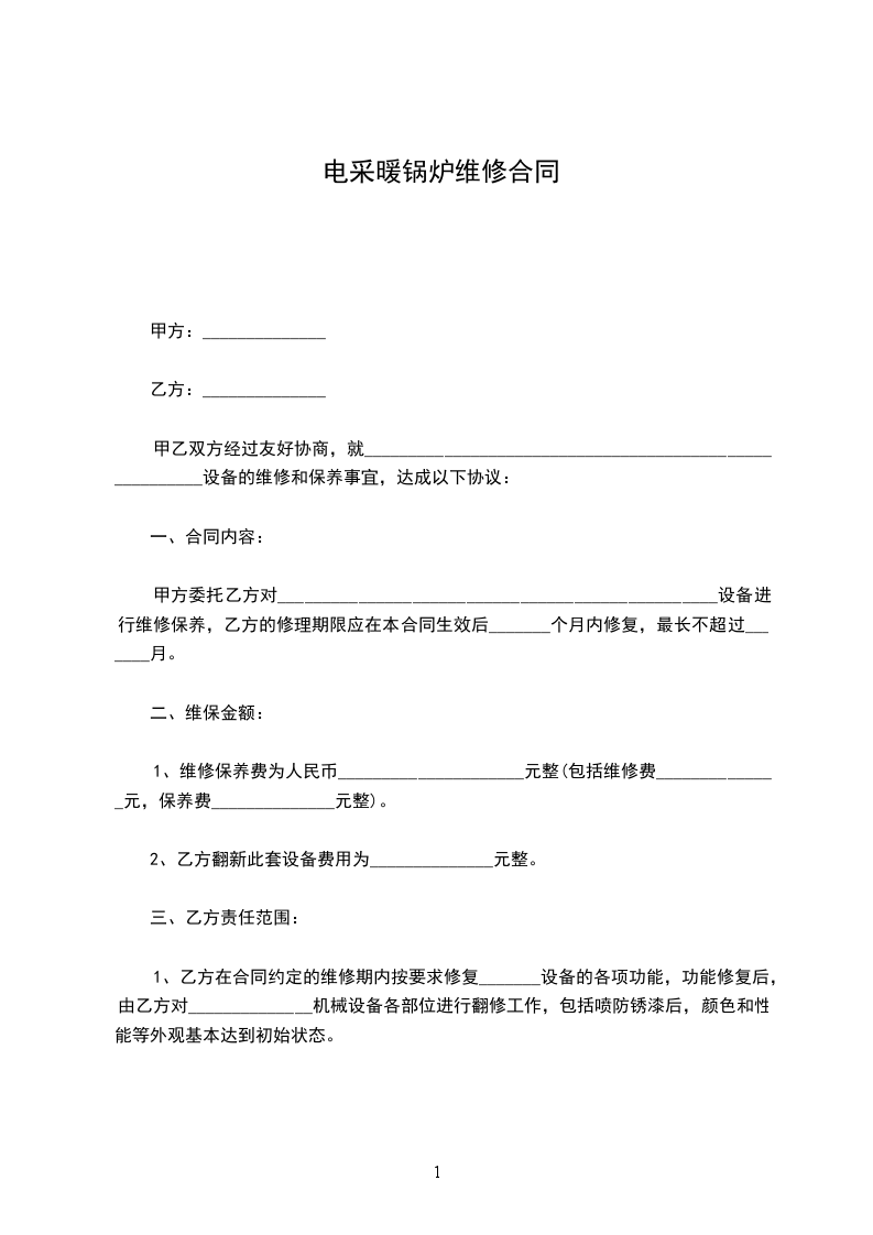 电暖器维修合同