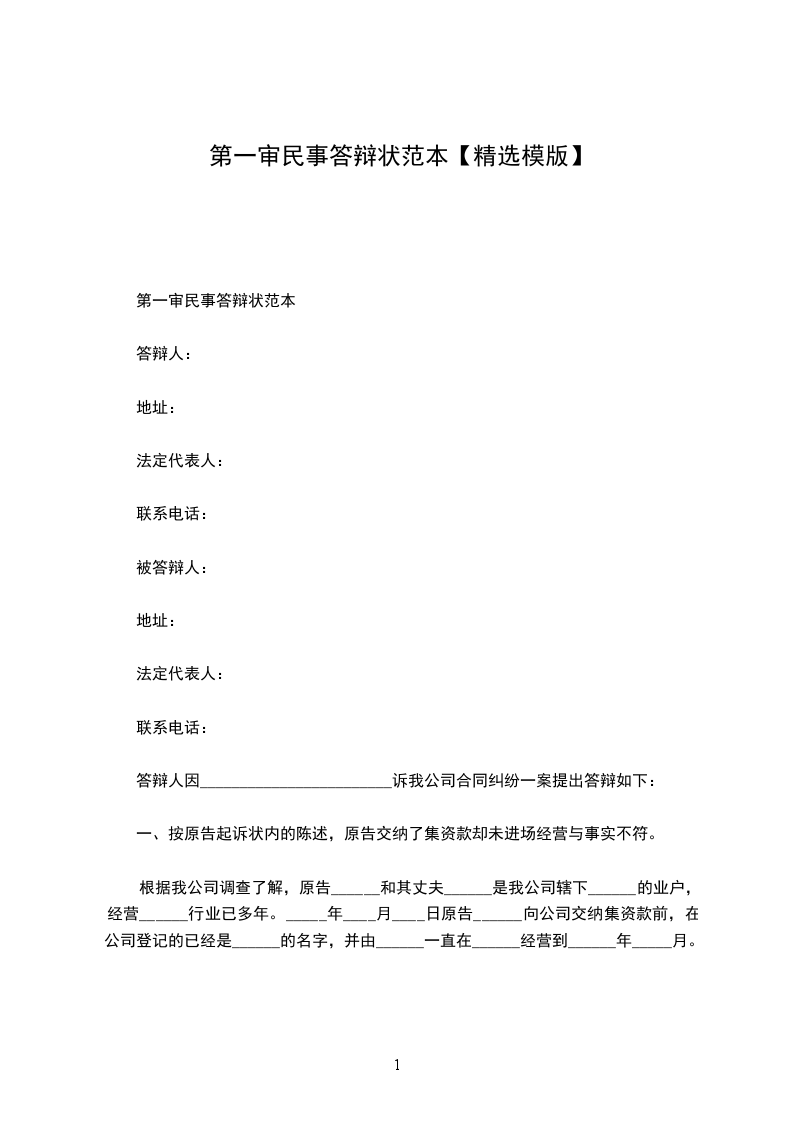 答辩人因________________________诉我公司合同纠纷一案提出答辩如下:
