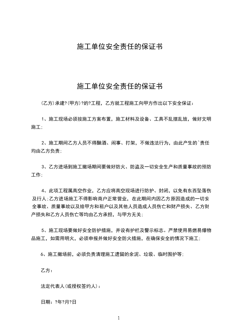 (甲方)的工程,乙方就工程施工向甲方作出以下安全保证:
