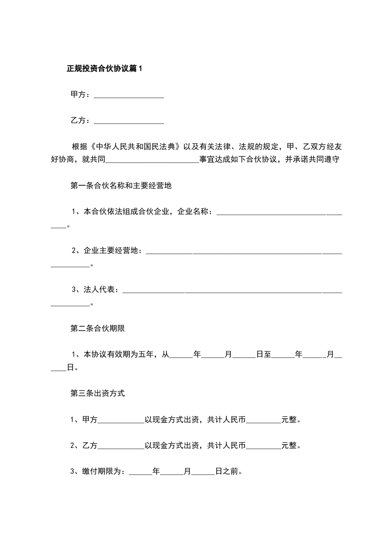正规投资合伙协议篇1