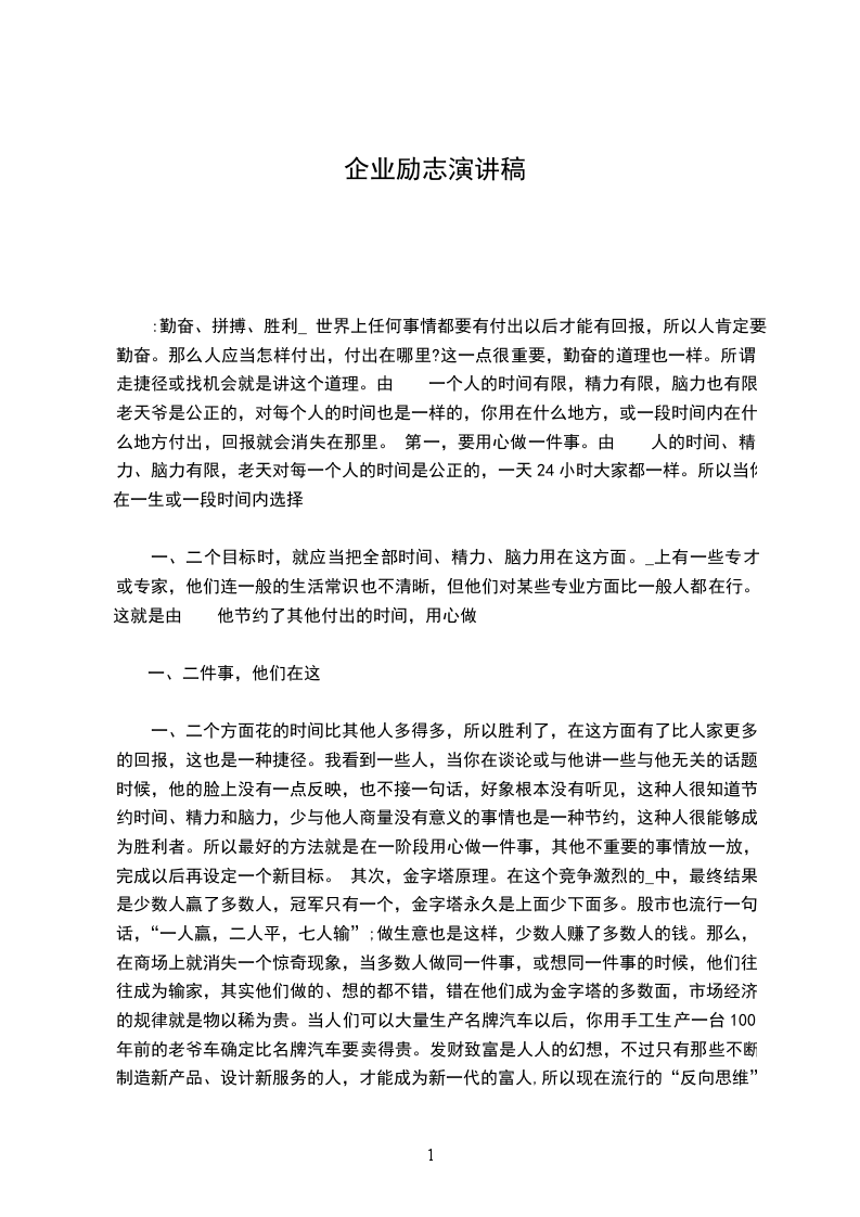 :勤奋、拼搏、胜利_ 世界上任何事情都要有付出以后才能有回报,所以人肯定要勤奋。那么人应当怎样付出,付出在哪里?这一点很重要,勤奋的道理也一样。所谓走捷径或找机会就是讲这个道理。由 一个人的时间有限,精力有限,脑力也有限。老天爷是公正的,对每个人的时间也是一样的,你用在什么地方,或一段时间内在什么地方付出,回报就会消失在那里。 第一,要用心做一件事。由 人的时间、精力、脑力有限,老天对每一个人的时间是公正的,一天24小时大家都一样。所以当你在一生或一段时间内选择