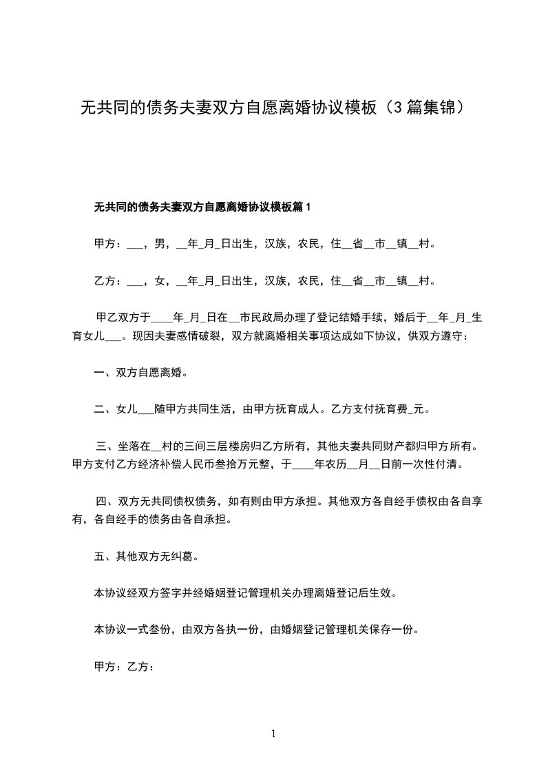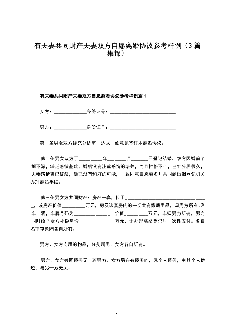 有夫妻共同财产夫妻双方自愿协议离婚范本参考样板篇1