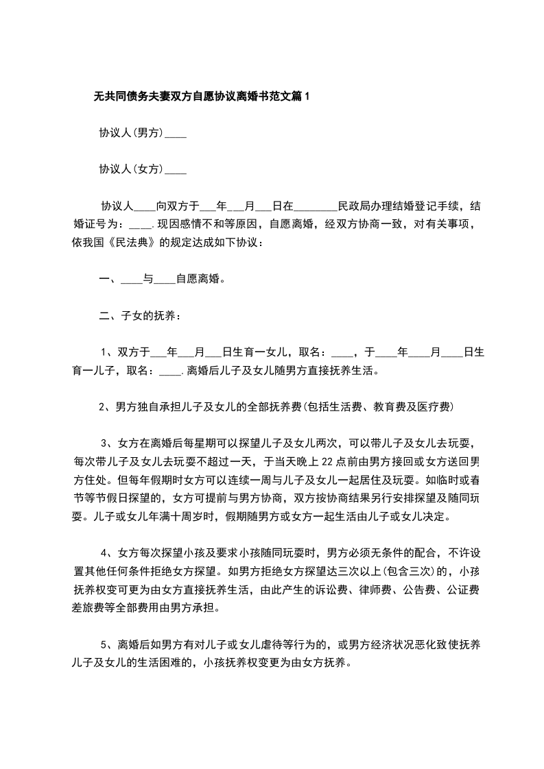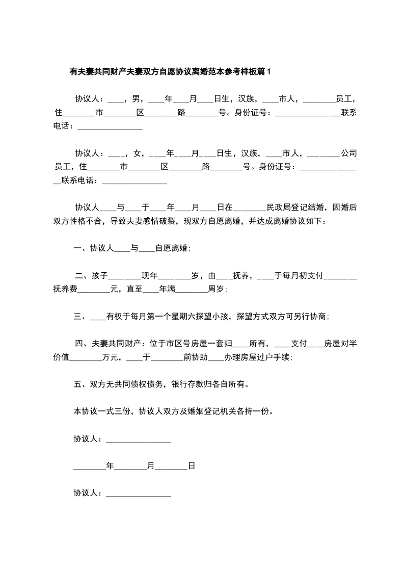 有夫妻共同财产夫妻双方自愿协议离婚范本参考样板篇2