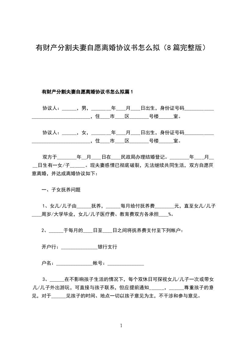 有财产分割双方自愿协议离婚范本怎么拟篇2
