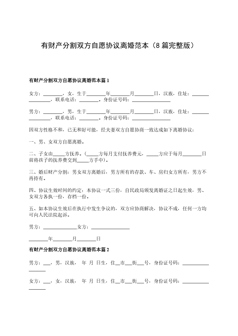 有财产分割双方自愿协议离婚范本怎么拟篇8