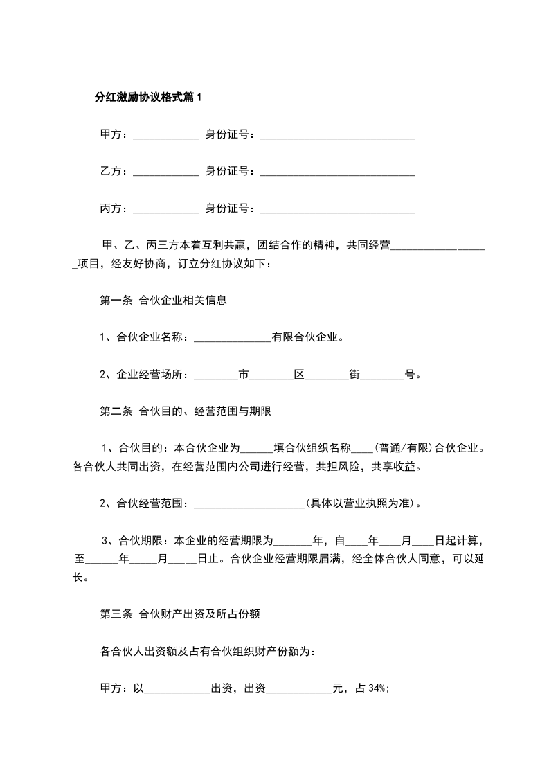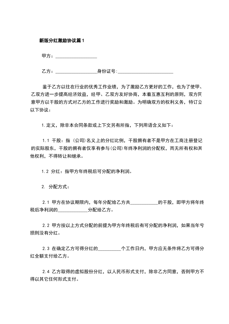 鉴于乙方以往对________________________有限公司(以下简称为“公司”)的贡献及激励乙方更好的工作,经甲、乙双方友好协商,现本着互惠互利的原则,双方同意甲方以干股的方式对乙方进行奖励和激励。为明确双方的权利义务,特订立以下协议: