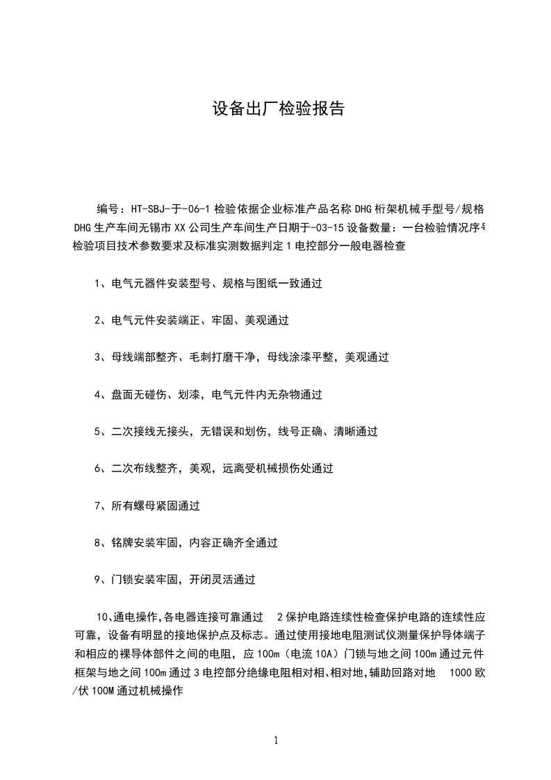 1.机械方面供货范围符合合同要求 是 否 无此内容