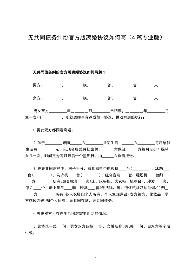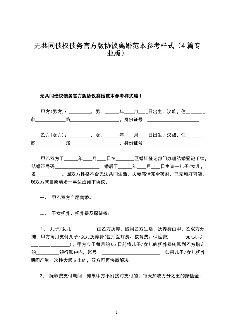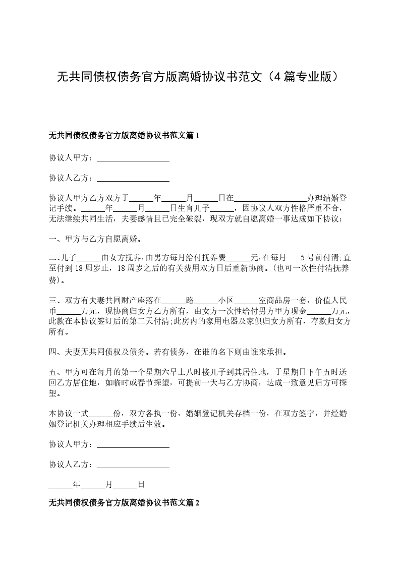 1、甲乙双方确认在婚姻关系存续期间没有发生共同债务。
