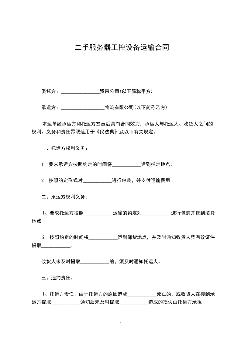 1、要求承运方按照约定的时间将____________运到指定地点;