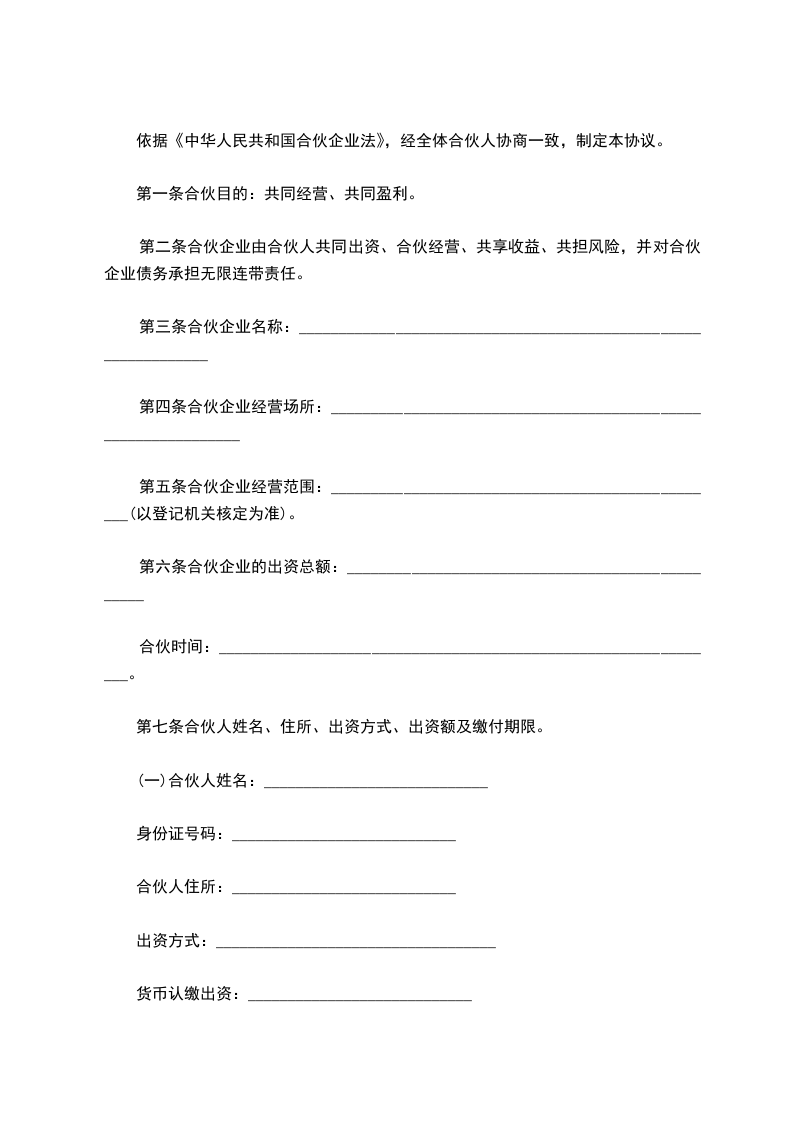 依据《中华人民共和国合伙企业法》,经全体合伙人协商一致,制定本协议。