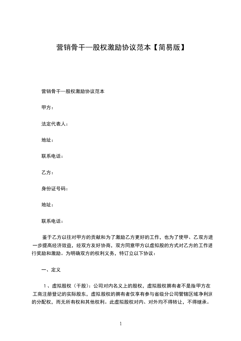 鉴于乙方以往对甲方的贡献和为了_____乙方更好的工作,也为了使甲、乙双方进一步提高经济效益,经双方友好协商,双方同意甲方以虚拟股的方式对乙方的工作进行奖励和_____。为明确双方的权利义务,特订立以下协议: