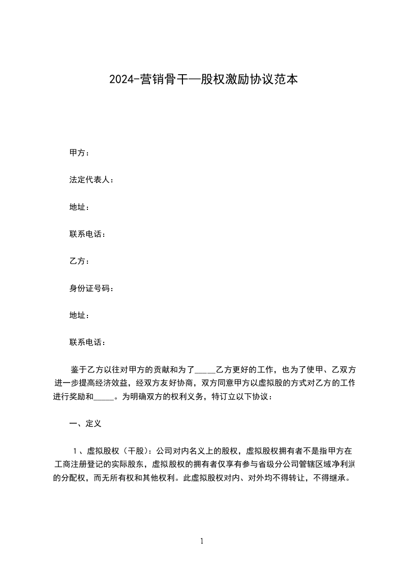 1、甲方经过全体股东一致同意,决定授予乙方______%虚拟股权。