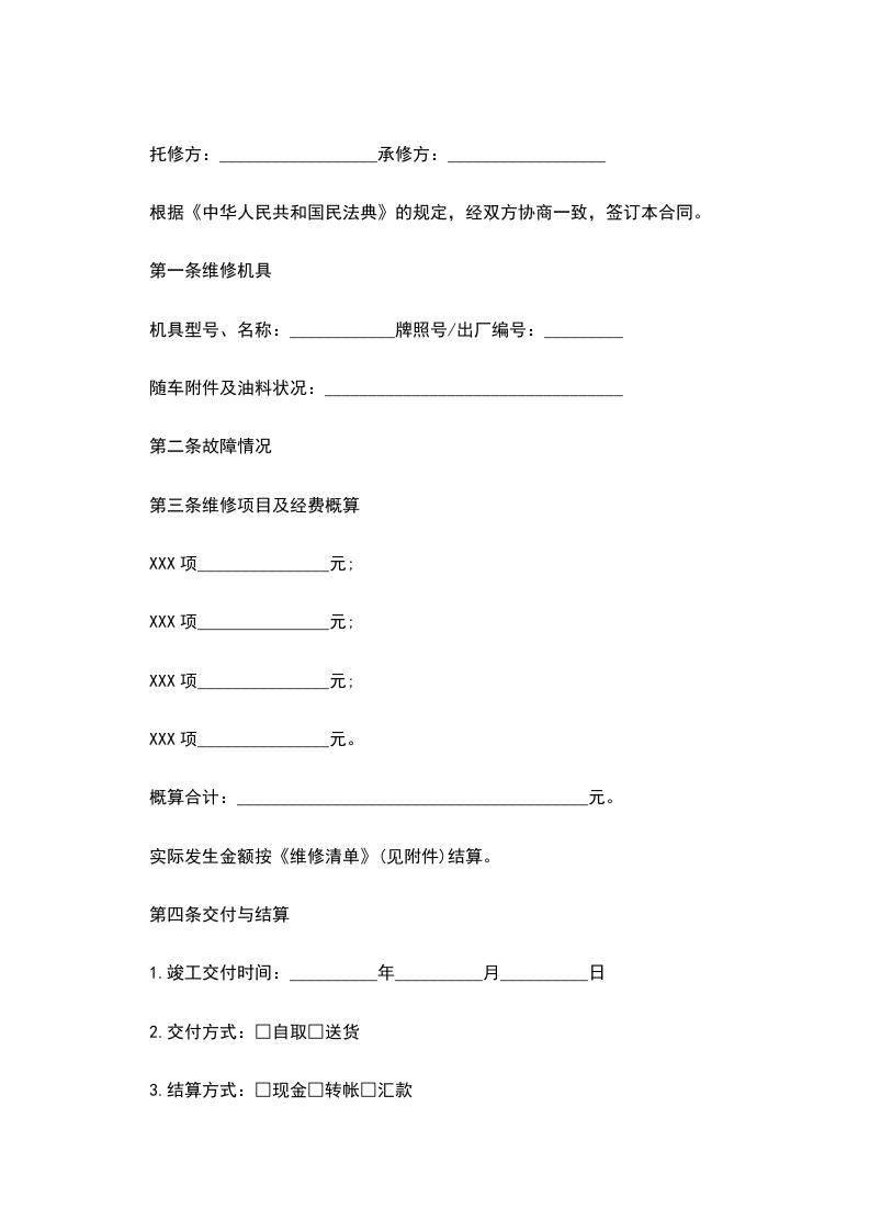5.托修方应说明托修机械的状况和需维修的内容,按合同规定的期限和方式接收竣工机械,支付维修费用;