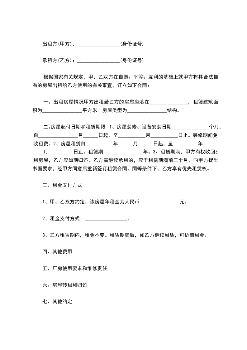 承租方(乙方):_________________(身份证号)