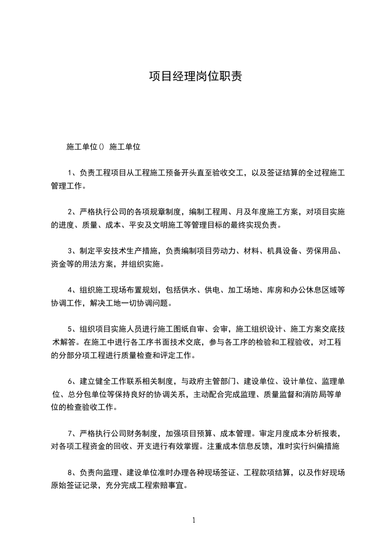 1、负责工程项目从工程施工预备开头直至验收交工,以及签证结算的全过程施工管理工作。