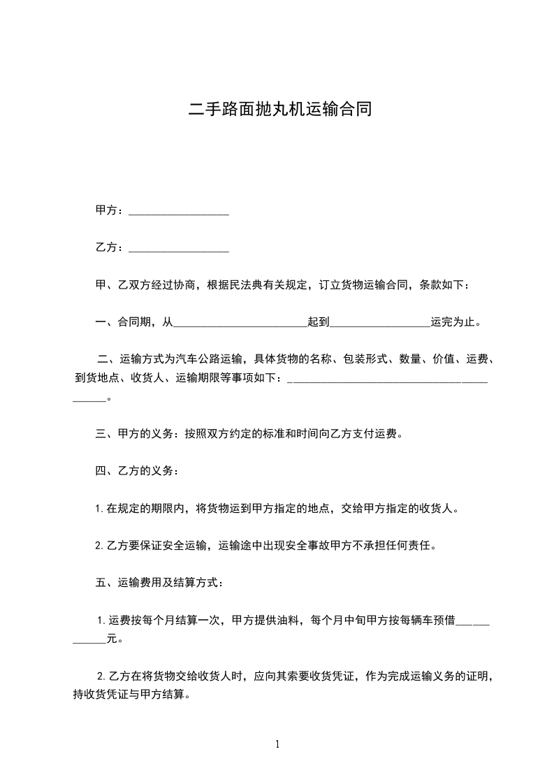 一、甲方委托乙方为__________________至_________________区内的货物特约承运单位。
