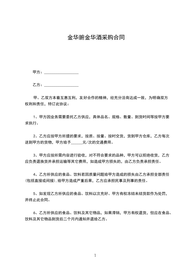 需方:____________(以下简称甲方)