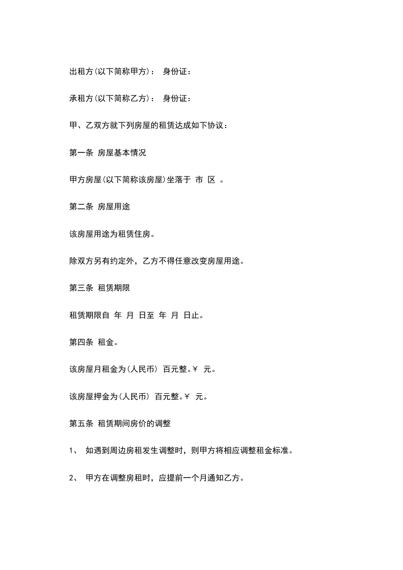 一、甲方将位于__________市__________街道__________小区_____号楼_____________号的房屋出租给乙方居住使用,租赁期限自__________年__________月__________日至__________年__________月__________日,计_____个月。