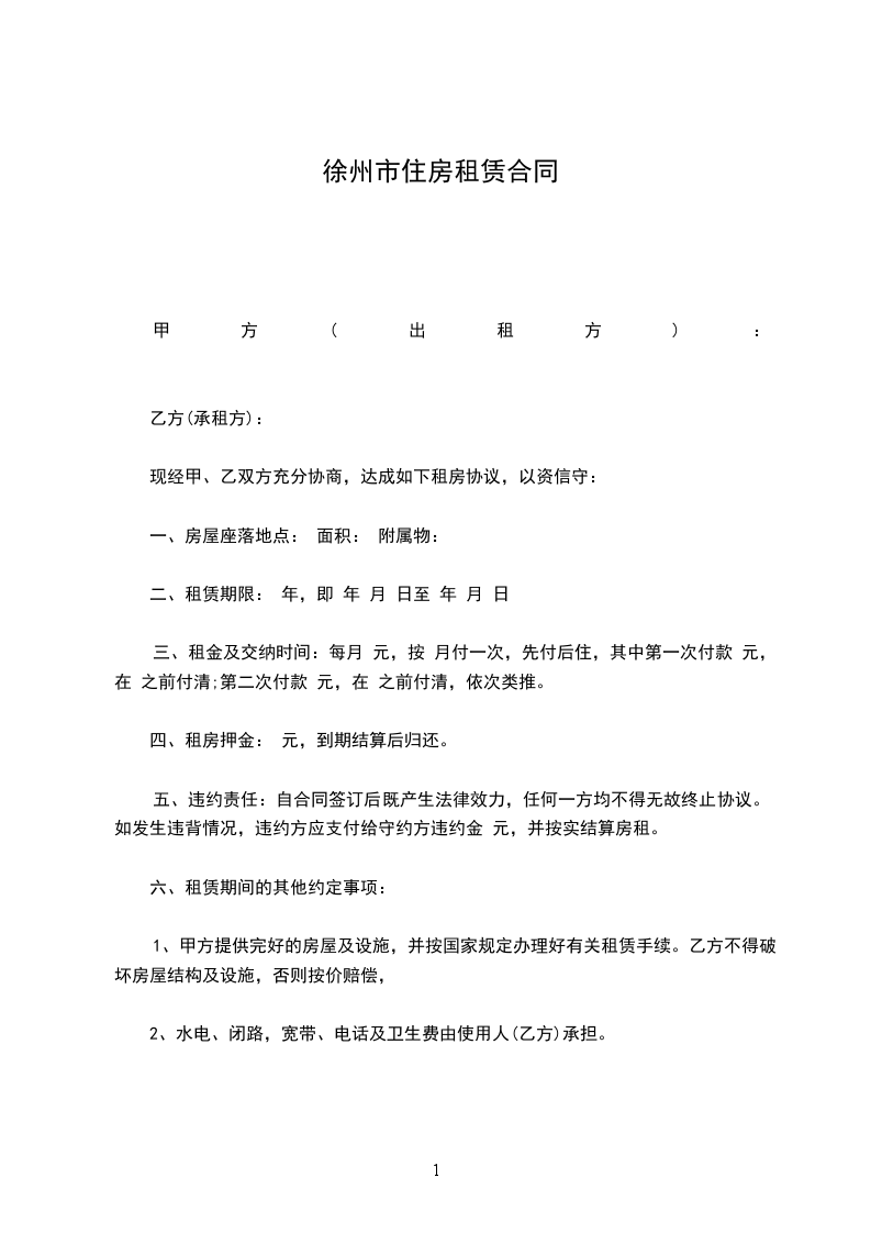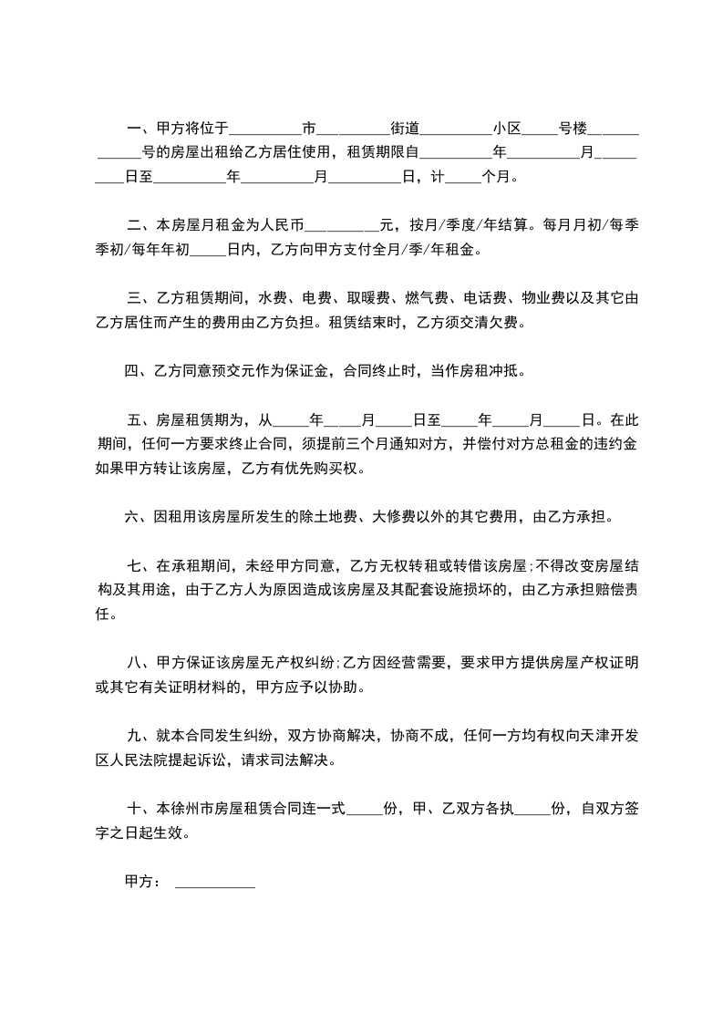 十、本徐州市房屋租赁合同连一式_____份,甲、乙双方各执_____份,自双方签字之日起生效。