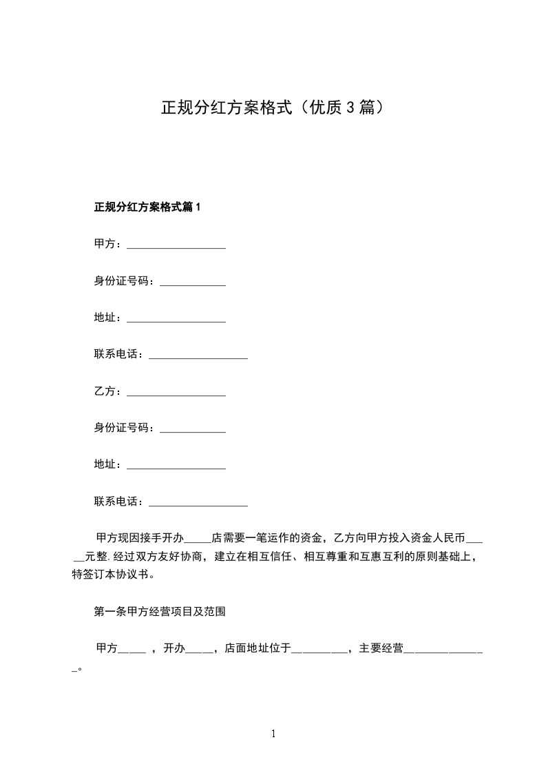 正规分红方案格式篇1
