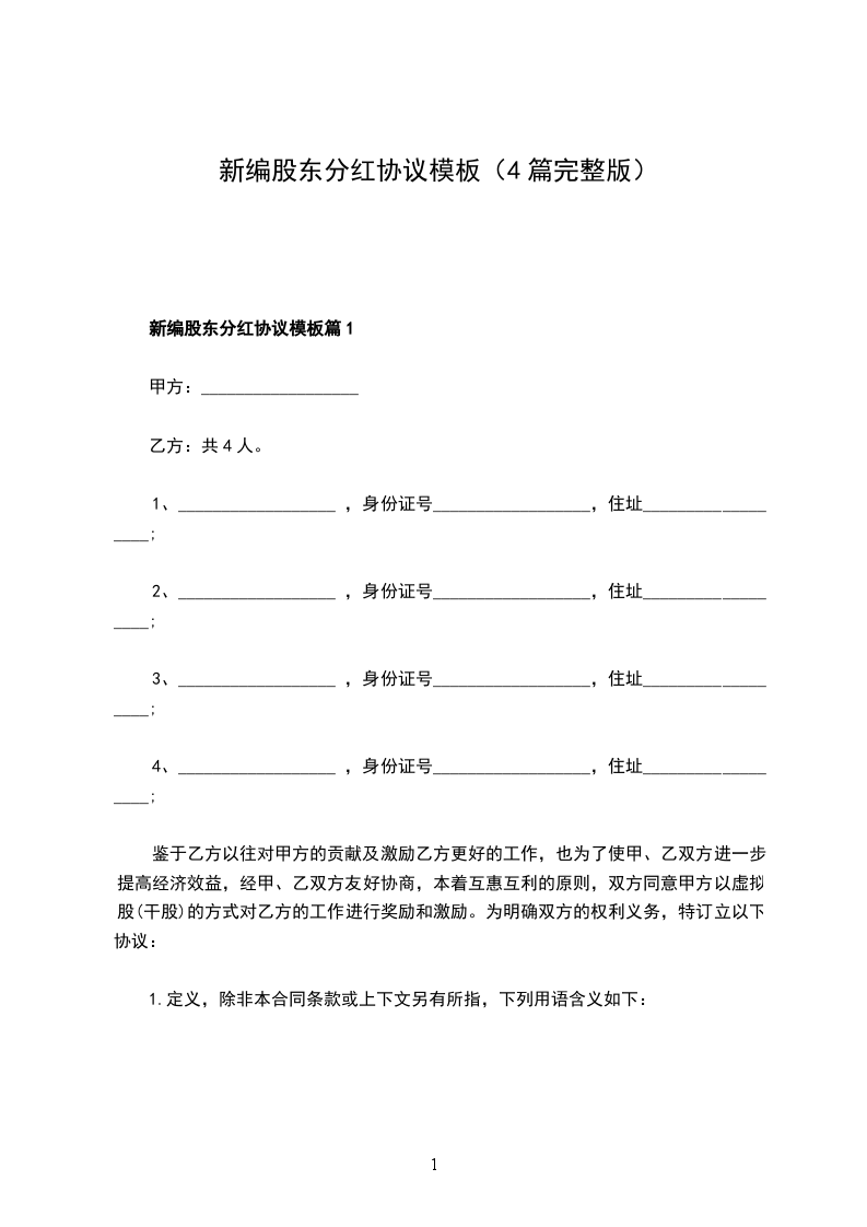 1.3. 乙方:指以上具体4人,协议中关于乙方的约定对乙方中任意1人均有同等约束力。