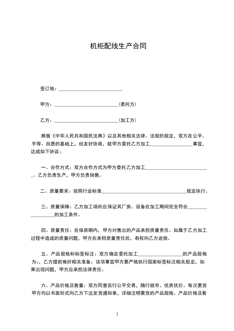 机柜配线生产合同