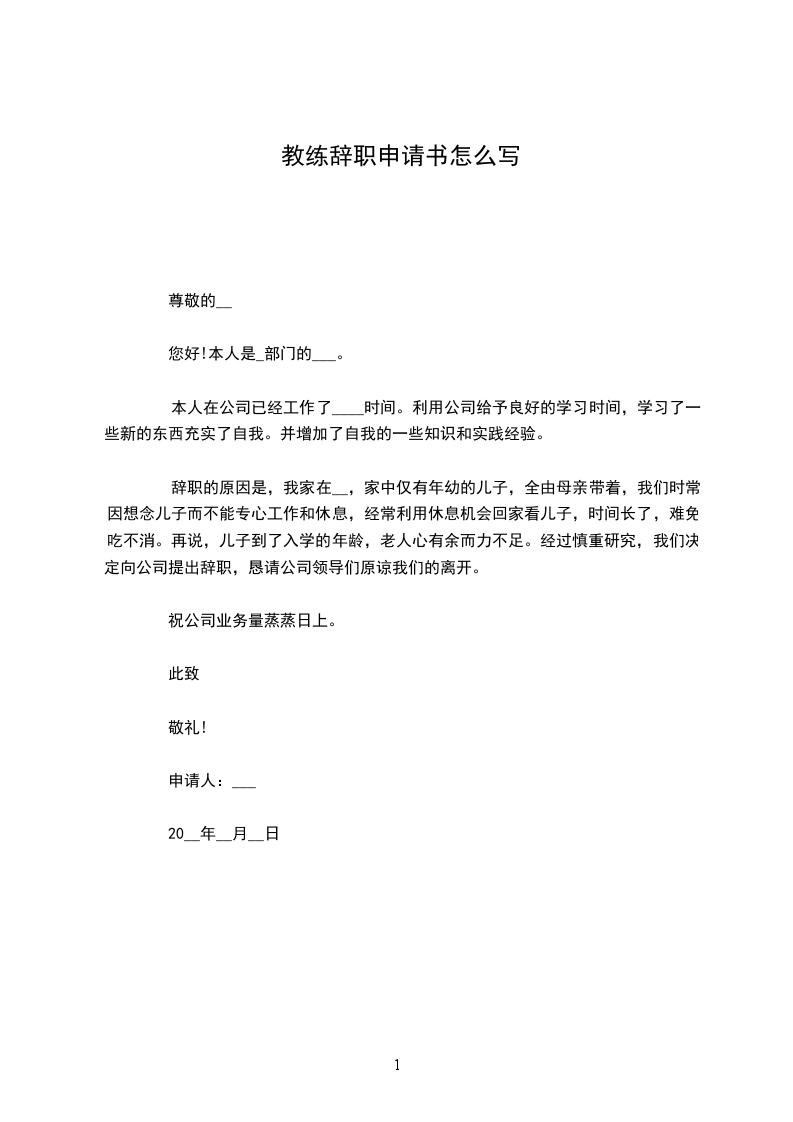 我是瑜伽教练林丽美,在××健身馆工作三年,现申请辞职,这份辞职报告同样也有一份交给人力资源部。近来由于馆内来学瑜伽的人较少,奖金也少,自我感觉呆不下去了,故申请辞职。