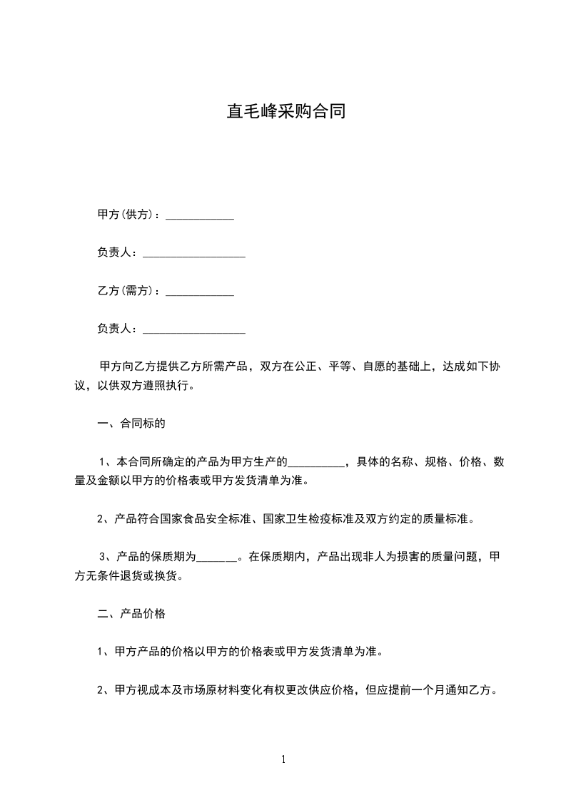1、本合同所确定的产品为甲方生产的__________,具体的名称、规格、价格、数量及金额以甲方的价格表或甲方发货清单为准。