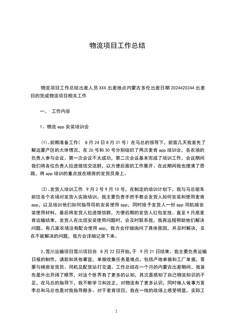 物流项目工作总结出差人员XXX出差地点内蒙古多伦出差日期2024420244出差目的完成物流项目相关工作
