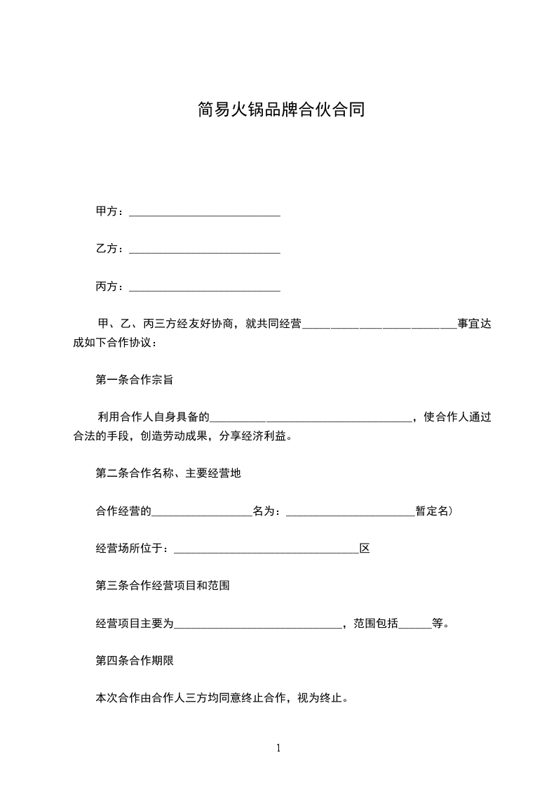 3、合伙期限:本次合伙期限为____年,以__________________租赁合同期限为准。合同到期,合伙人同意合伙续租,没有另签合伙协议时,按本协议继续执行。