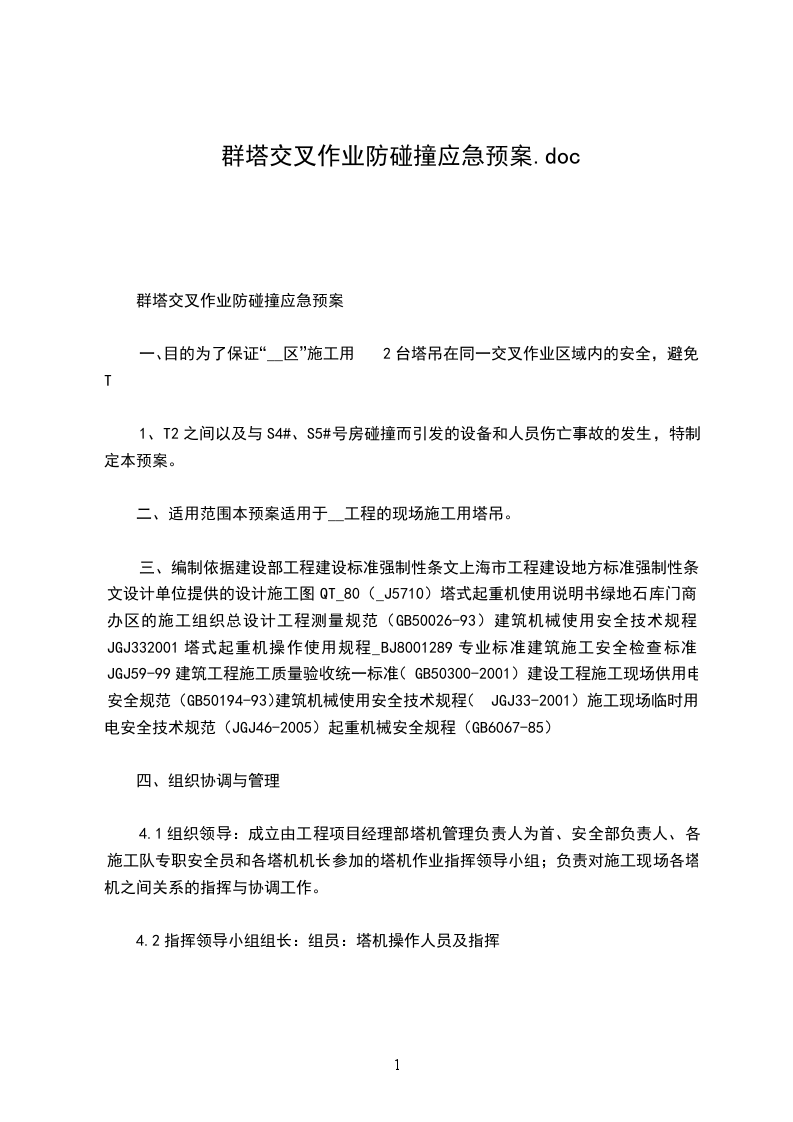 群塔交叉作业防碰撞应急预案