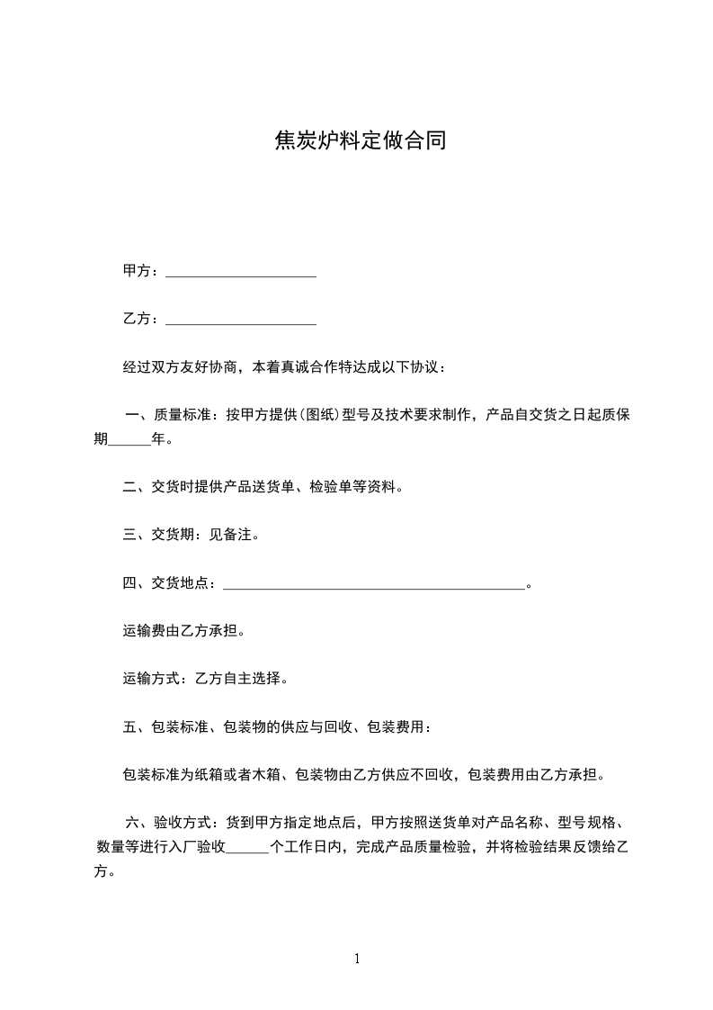 一、质量标准:按甲方提供(图纸)型号及技术要求制作,产品自交货之日起质保期______年。