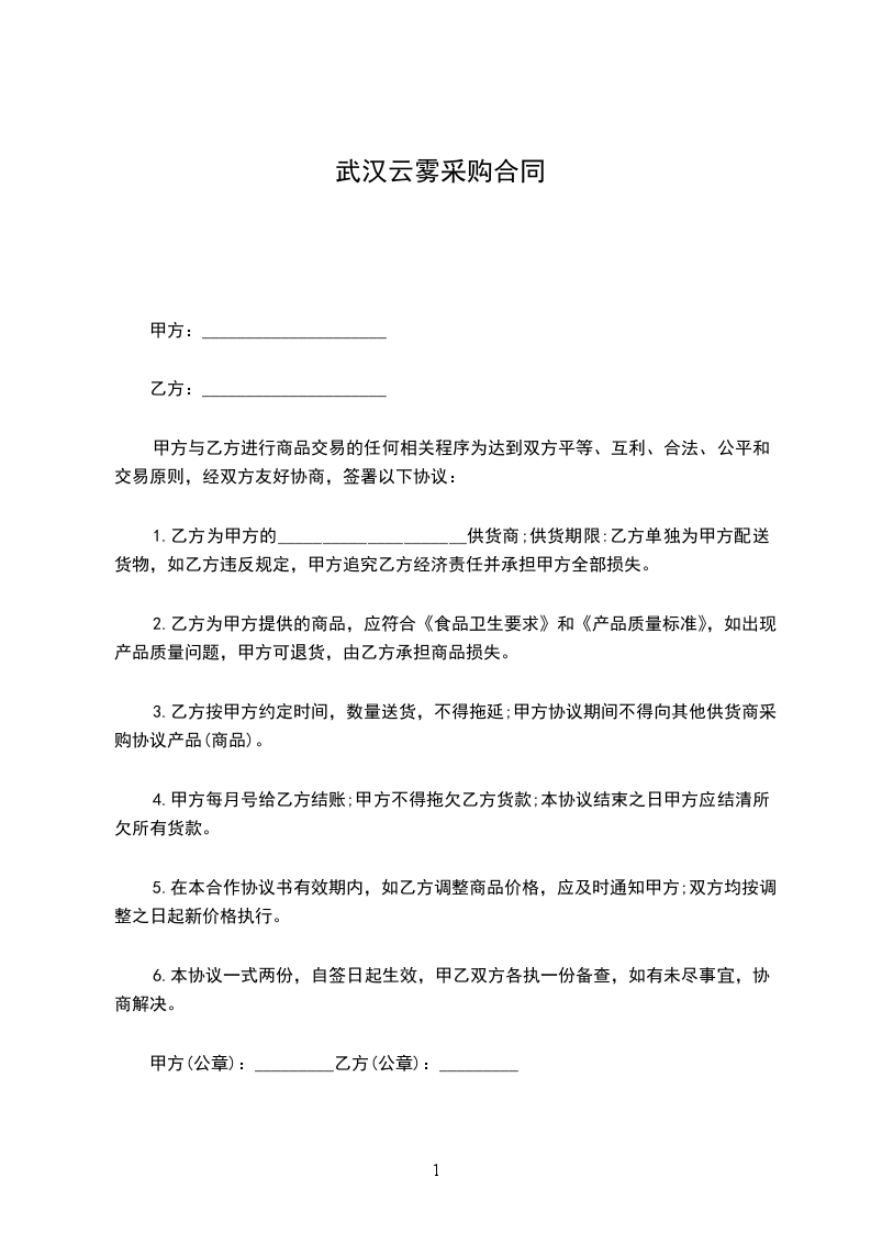甲方与乙方进行商品交易的任何相关程序为达到双方平等、互利、合法、公平和交易原则,经双方友好协商,签署以下协议: