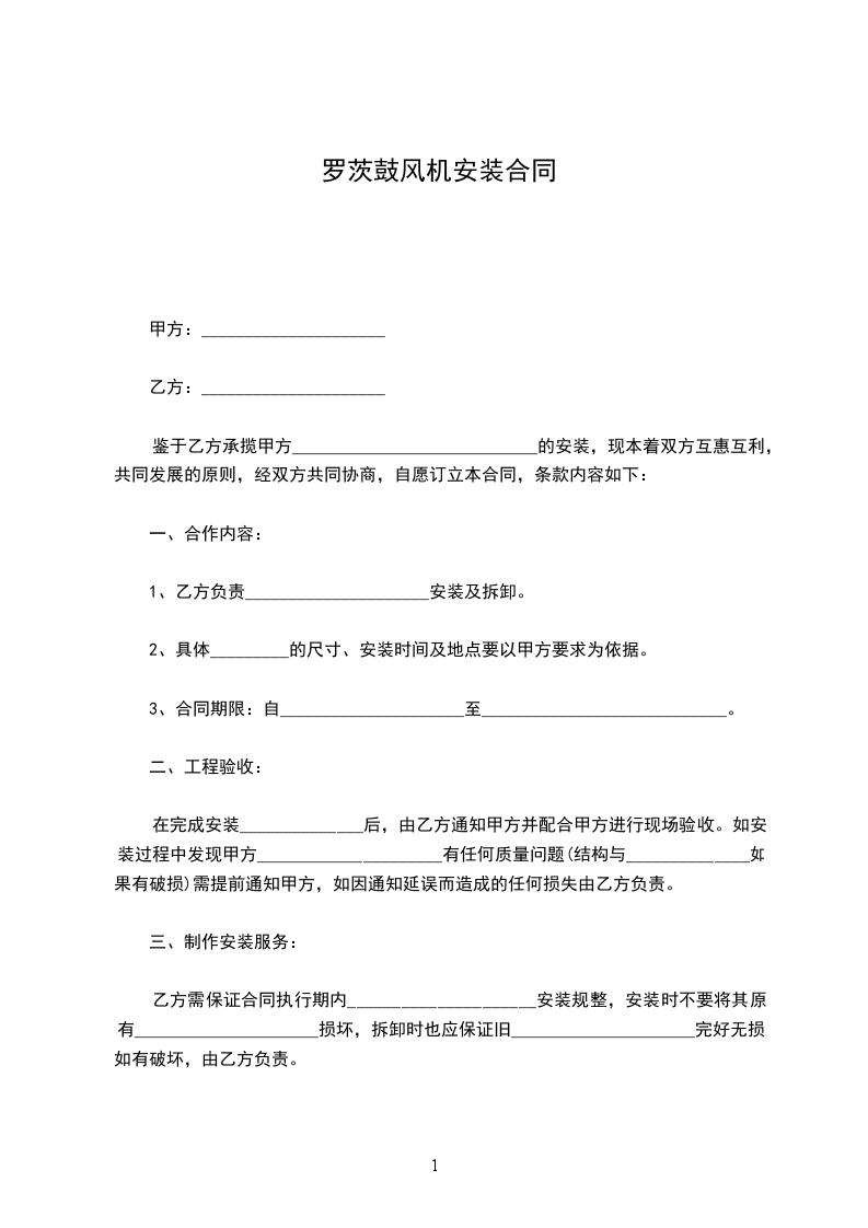 鉴于乙方承揽甲方____________________________的安装,现本着双方互惠互利,共同发展的原则,经双方共同协商,自愿订立本合同,条款内容如下: