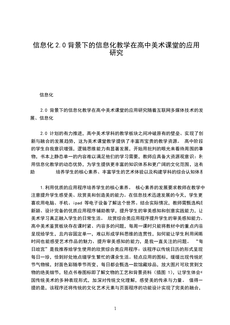 2.0 背景下的信息化教学在高中美术课堂的应用研究随着互联网多媒体技术的发展、信息化