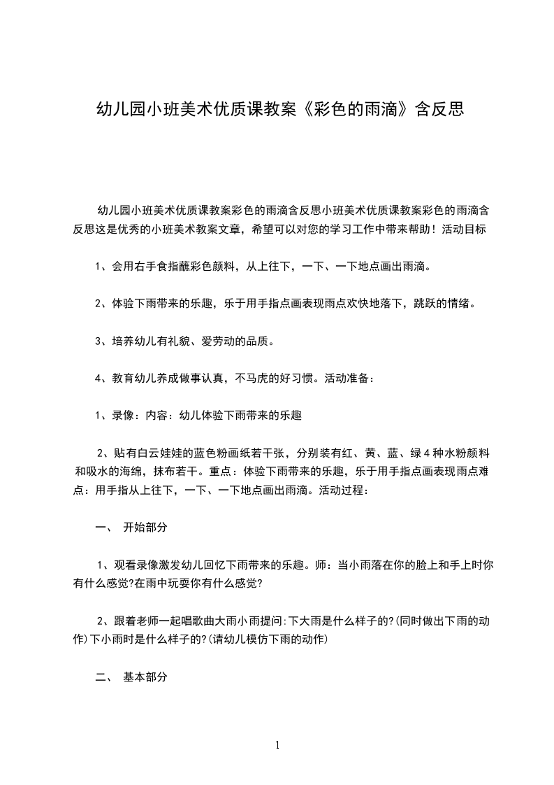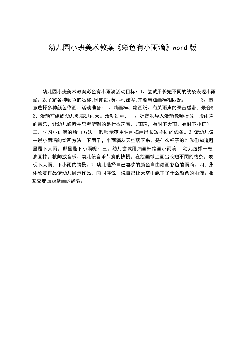 幼儿园小班美术优质课教案彩色的雨滴含反思小班美术优质课教案彩色的雨滴含反思这是优秀的小班美术教案文章,希望可以对您的学习工作中带来帮助!活动目标: