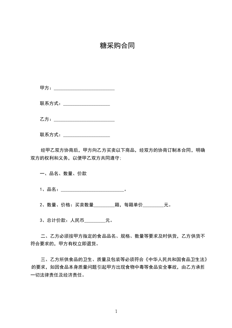 为进一步规范企业食品及食品原料采购行为,确保食品及食品原料采购做到公平、公正、公开、采购的食品价格合理、质量符合食品安全要求,根据平等自愿和诚实信用的原则,经甲、乙双方协商,特签订买卖合同,供甲、乙双方共同遵守。